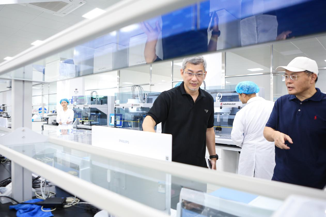座談匯報后,中生藥協(xié)常務(wù)副會長兼秘書長胡文言、廈門市科技局處長莊如真、廈門市食藥檢院院長李玲玲、萬泰滄海董事長李世成一行參觀考察了我司全方法學(xué)“一條龍”內(nèi)毒素檢測產(chǎn)品系列,我司董事長吳尚毅重點展示了微量動態(tài)顯色法鱟試劑盒、重組C因子熒光法試劑盒、重組級聯(lián)試劑顯色法試劑盒、單核細胞活化反應(yīng)測定MAT法系列產(chǎn)品及BIOENDO模塊化智能全自動檢測機器人系統(tǒng)EndoMaster,我司可持續(xù)發(fā)展的內(nèi)毒素檢測解決方案獲得各位領(lǐng)導(dǎo)的認可和好評。